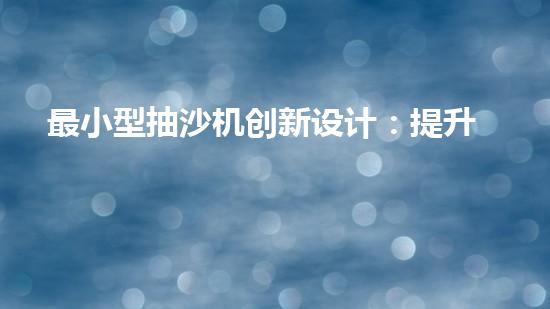 最小型抽沙機創新設計:提升效率的抽沙設備如何改變產業格局?